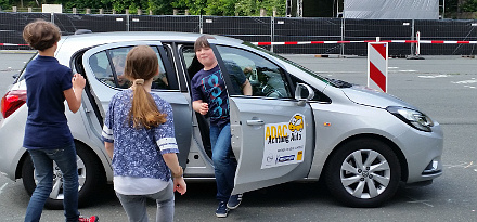 Am Montag, dem 13.06.2016, hatten wir die Möglichkeit, am Jugend-Fahrradturnier des ADAC teilzunehmen. Mit Fahrradhelmen „bewaffnet“ wanderten wir – getrennt nach Klassen - gemeinsam mit unseren Lehrern zum Anton-Günther-Platz in Aue. Dort erwartete uns schon Herr Weiß, der uns zunächst viel Interessantes über Brems- und Anhalteweg zu berichten hatte. Am besten war aber doch, dass wir auch praktisch im Auto eine Vollbremsung miterleben konnten. Ganz schön faszinierend, wie man dabei in die Gurte gedrückt wird.