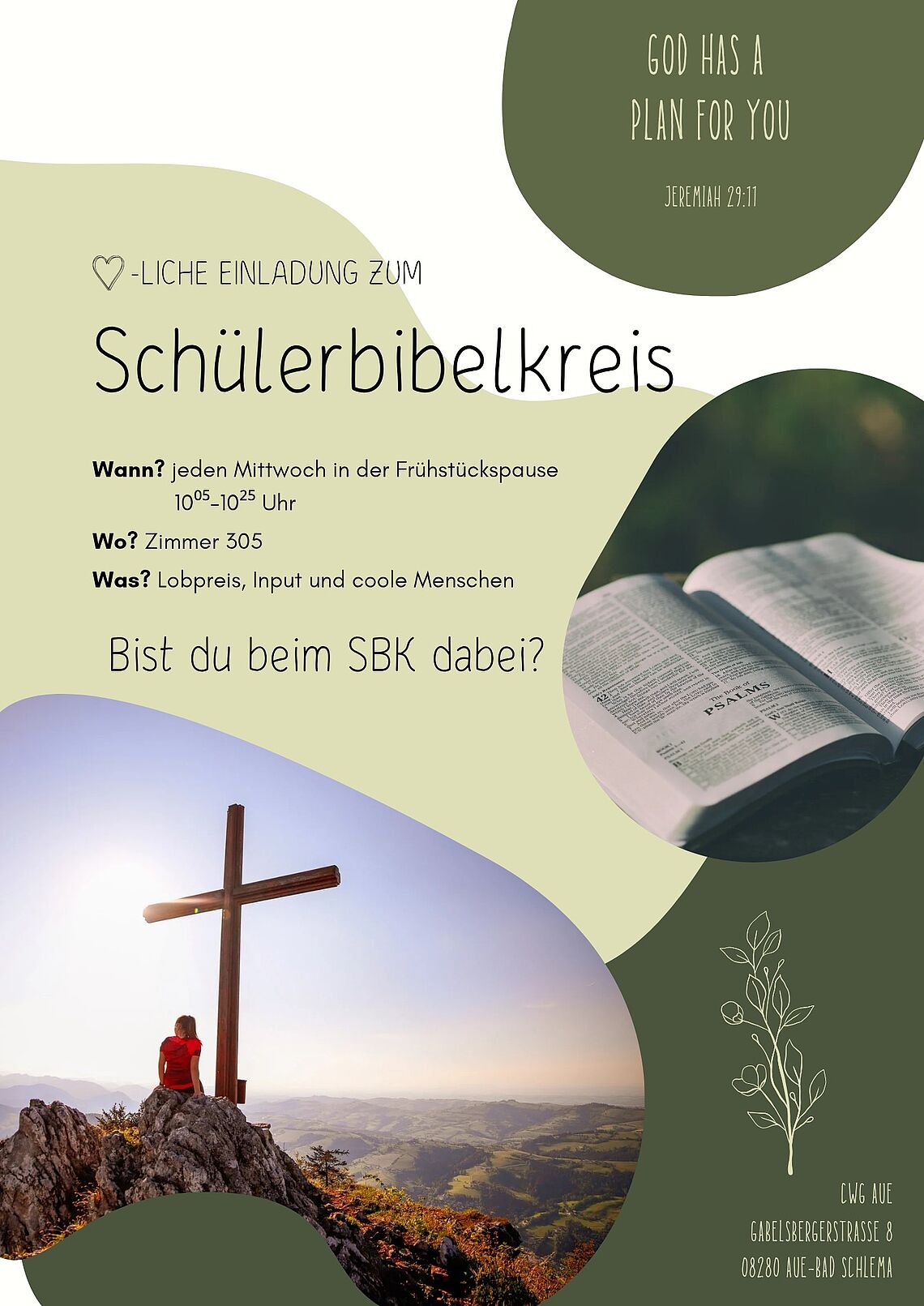 Der Schülerbibelkreis (SBK) ist eine Initiative von Schülerinnen und Schülern unseres Gymnasiums. Wir treffen uns wöchentlich, um zusammen Lobpreis zu machen, Bibel zu lesen und Gemeinschaft zu haben.